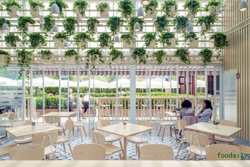 “设计的灵感恰是源自咖啡馆在选择食材上的有机选择,”建筑师 Lukasz Kos 表示。“我们希望激发起人们对健康食物或者绿色建筑的渴望。首先要做到的,就是在空间里让食客对周边的环境有丰富的感知力。”