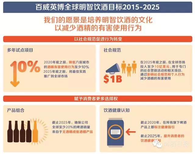 首先,百威英博将选定全球六座城市作为试点,开展一系列项目使酒精有害使用行为减少10%。