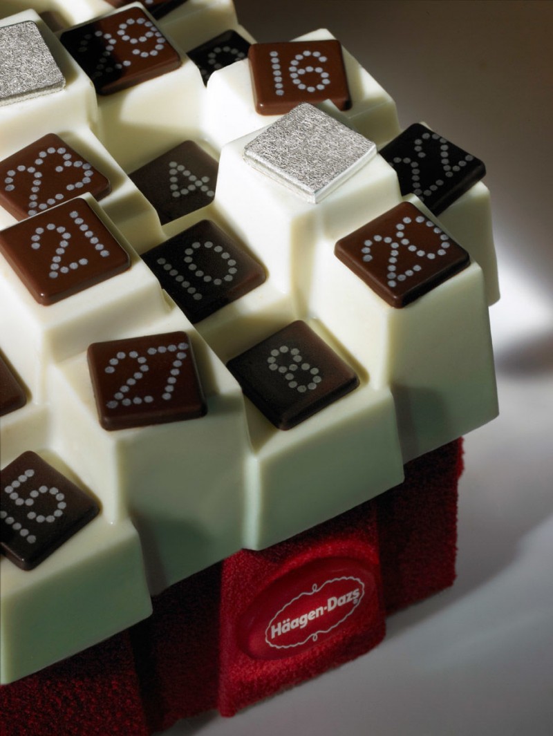 当然,食品商家们找来设计师做各种合作款早已不是新鲜事。上个月我们就曾报道过意大利室内设计师 Paola Navone 为哈根达斯做的 2015 圣诞主题甜点,是在冰淇淋蛋糕上用白巧克力做了一个可食用的日历。
