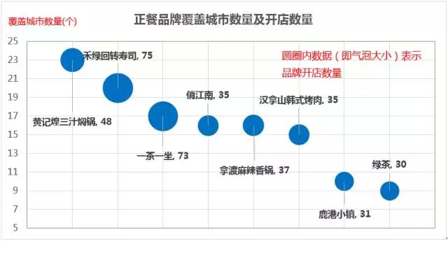 3、全国连锁正餐品牌覆盖城市及开店规模列举