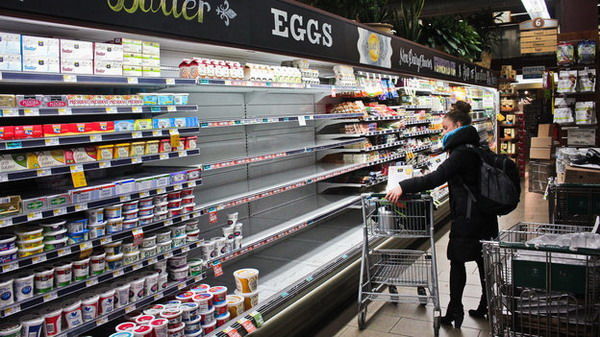 美国有机食品超市 Whole Food 的有机鸡蛋货架,鸡蛋被抢购一空美国有机食品超市 Whole Food 的有机鸡蛋货架,鸡蛋被抢购一空
