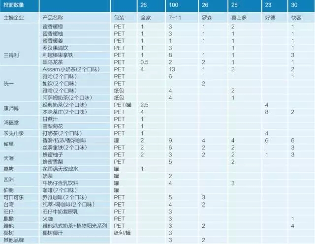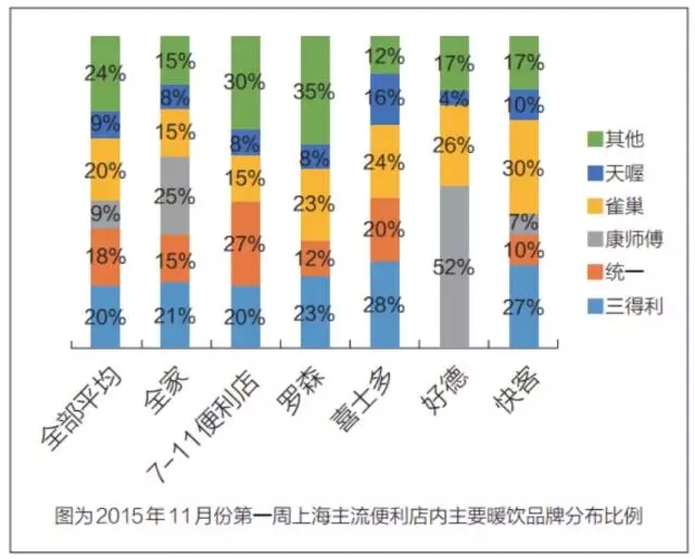 图为上海2015年11月份第一周上海主流便利店内暖饮产品排面数量