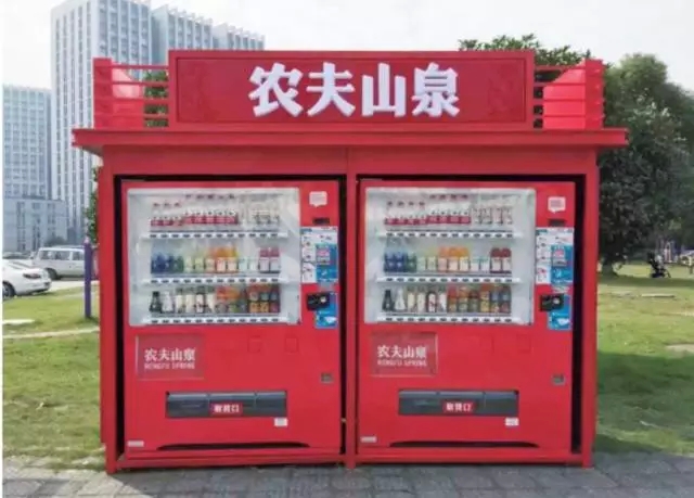 近两年,自动售贩机深入各渠道,农夫山泉不惜花重金定制专属售贩机,只销售自己的产品。目前,自动售贩机的投放以一二线城市为主,三四线城市为辅,并逐步在全国铺开。为了提高产品的销售频次和效率,农夫山泉通过测算商圈、合计折损成本选择投放点,以景区、医院、广场等特通渠道为主。内部人士表示,通常情况下,一台自动售贩机每天需要加三、四次货,销量也能达到100多瓶。
