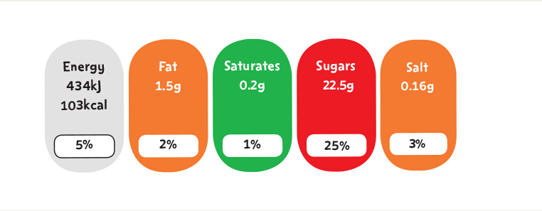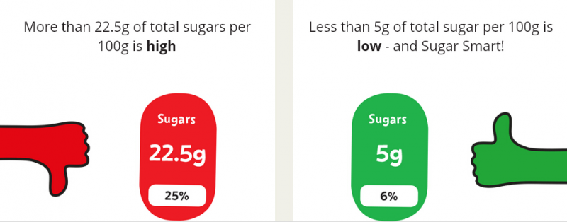 去超市学会看配料表:食品标签经常使用红色,黄色和绿色的颜色编码,告诉我们有多少脂肪,糖和盐是在食物或饮料的一部分。也注意多少克的糖有每100克。每100克的糖含量有助于你比较不同的产品。