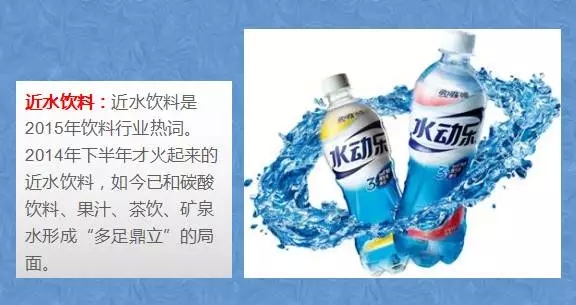 2.近水饮料:2015年夏天席卷整个饮料市场的非近水饮料莫属,统一海之言、百事维动力、康师傅海晶柠檬、娃哈哈C驱动、达能脉动等等近水饮料在风雨飘摇的饮料市场上坚定地为各自的母公司守住了一块阵地。