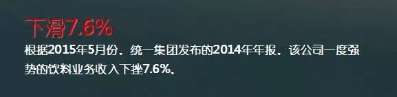 各企业将业绩下滑归结于整体经济环境增长放缓、经济不景气及天气异常。中国旺旺称,2014年下半年中国的低热多雨天气,对销售带来较大挑战。统一集团则表示,下滑主要由于整体经济环境成长放缓,消费者饮料选择品类调整,国内整体饮料需求降低所致,茶饮料及果汁整体市场衰退,奶茶成长放缓。