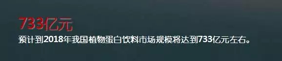 根据中国产业信息网数据:2013年我国植物蛋白饮料市场消费量达到26.22亿升,同比增长24.8%;行业市场规模为253.29亿元,同比增长26.9%;预计到2018年我国植物蛋白饮料市场规模将达到733亿元左右。