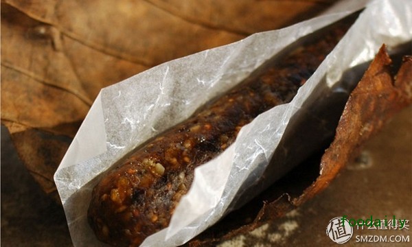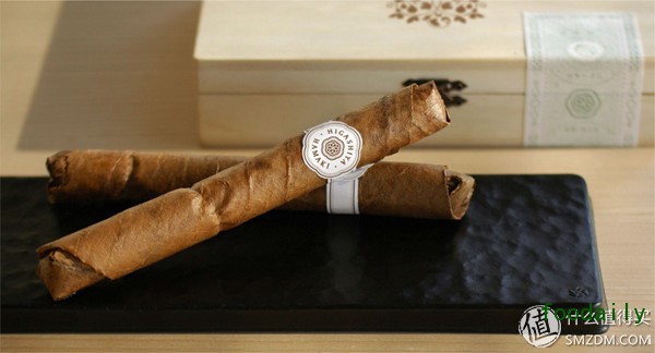 该款和果子为长筒形,外部使用朴叶卷特制而成,模仿出了雪茄外部的烟叶效果,而内部也同样仿制地很到位,看起来就像是咖啡色的“烟叶混合物”。若是将它和真的雪茄放在一起,不仔细看应该能达到以假乱真的效果。不知道这样一款“雪茄”,吃起来是什么味道。