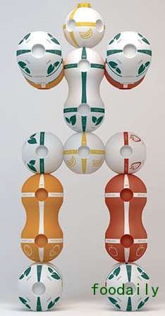 每一个牛奶壶的腰线上都有四个凹下去的孔,其大小刚好和盖子对应;而盖子上则又凸起与凹下的圆形结构,刚好可以像乐高玩具一样互相拼在一起。于是,只要你喝掉得牛奶够多,这些结构可以保证你用牛奶壶拼插出各种各样的玩意出来,是一个机器人还是一头怪兽?全看你的想象~