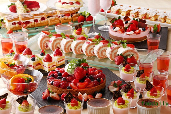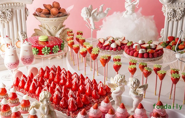 日本希尔顿酒店的草莓节可以说是大受欢迎,每年都有大量的游客或当地居民蜂拥而至。今年的草莓节主题为“草莓天使”,用丘比特雕塑和棉花糖来装饰自助餐台,甜点多达40多种,比如草莓蛋挞、丘比特杏仁饼干、草莓芝士蛋糕、草莓布丁、樱桃甜点,巧克力夹心糖和草莓杯子蛋糕,草莓铜锣烧以及巧克力喷泉、草莓沙拉、草莓三明治等。此外还有草莓起泡酒及草莓拿铁等酒水提供,任君取用。