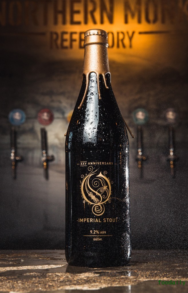 为了纪念瑞典重金属乐队月亮之城,英国Northern Monk Brew Co啤酒厂推出纪念版啤酒。该款25周年至尊烈酒,酒精度为9.2%,660ml装限量销售1700瓶。该款黑啤是由利兹市啤酒制造商用烘烤风味和丰富的巧克力,太妃和咖啡糖渣经一次酿造制成。