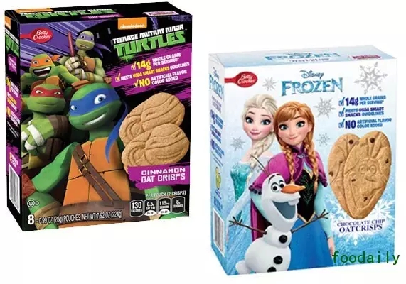 通用磨坊的贝蒂妙厨品牌推出冷冻巧克力燕麦片和少年忍者神龟肉桂燕麦片。这种饼干上面印上了奥拉夫或者神龟,每份可以提供14g的全谷物和8g或更少的糖。