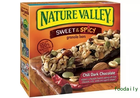 Nature Valley也同样推出了一款新的即食燕麦棒:甜味&辛辣味。即食燕麦棒以巧克力块、坚果、种子和辣椒混合后再以巧克力涂层为特征。
