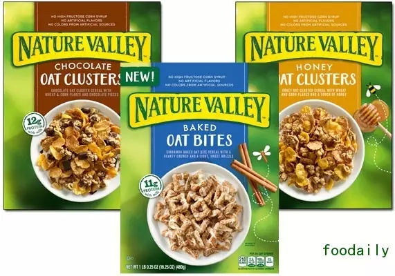 Nature Valley推出了三种早餐谷物,包括牛奶在内的每份至少含有10g蛋白质。蜂蜜燕麦谷物由蜂蜜,即食燕麦片、玉米和小麦片等混合而成。巧克力燕麦片谷物以巧克力块、即食燕麦片、玉米和麦片为特征。