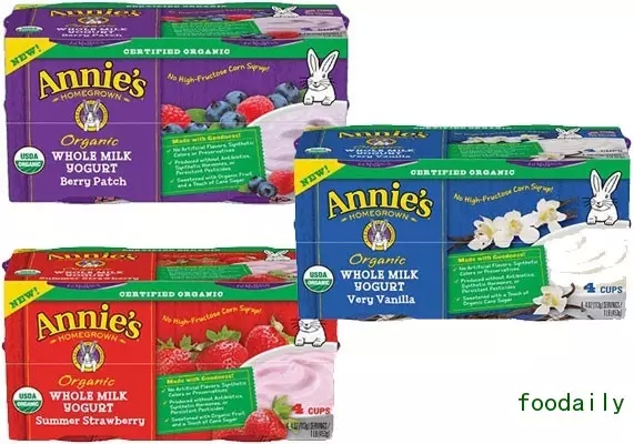 通用磨坊旗下的Annie's 品牌推出了一系列含有水果的有机酸奶。包括混合浆果味,夏季草莓味和浓郁香草风味。