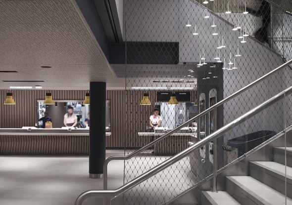 在Patrick Norguet手中,香榭丽舍新店完全换了新颜,原始混凝土体块、金属片与多彩的顶置式灯箱的组合很特别,“这是一项耗时两年时间的最新研究成果,集合了新技术,为的是更适合食客不断变化的消费习惯。”