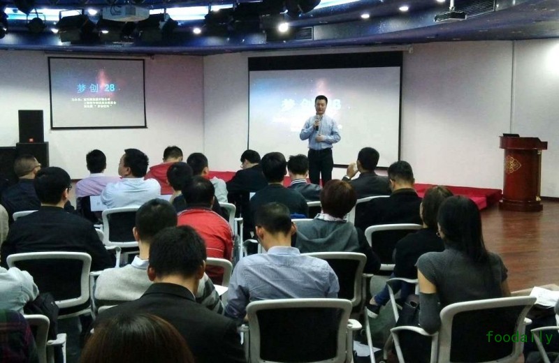 万黎峻在“梦创 28 ”路演活动上。该活动每月 28 日定期举行,由 4-5个创业团队介绍项目,并有投资人参与。