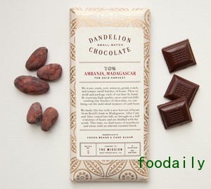 Dandelion Chocolate在其马达加斯加单一来源巧克力块的包装正面描述了制造的过程。