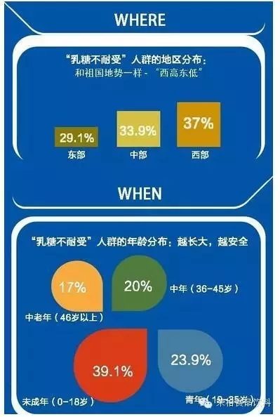 乳糖不耐受人群主要集中于我国西部地区,其中以青少年为主,中老年人群受乳糖不耐受影响较小。国人普遍存在饮奶不易吸收问题,多数存在乳糖不耐受病状。