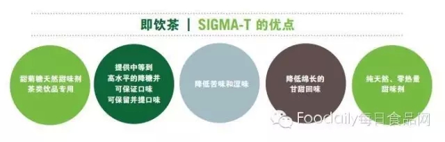 Sigma-T有助于配方设计师降低来自茶叶的天然苦味,同时在不向配方中添加任何多余甜味和热量的前提下提升茶的原来味道。作为专门针对茶饮品市场设计的甜菊糖解决方案,Sigma-T能在高水平降糖上实现这一性能,首次赋予品牌全部使用天然原料制造低糖茶饮品的能力。与口感出众的产品组合一起使用,能显著减少开发时间并使产品获得绝佳味道,更快地进入市场。