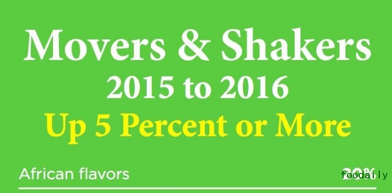 非洲风味现在收到了主厨们的喜爱,它是今年 National Restaurant Association 的热门食物排行榜上升最快的,提名非洲口味的主厨比去年多了 20%。