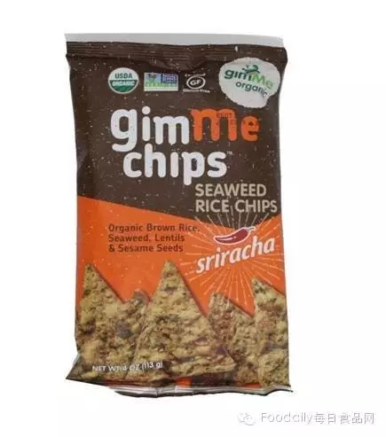 GimMe Organic Sriracha FlavorSeaweed Rice Chips (由谷物、豆类、海藻等有机原料制成的拉差酱风味零食脆片)