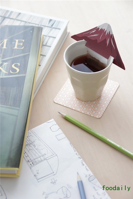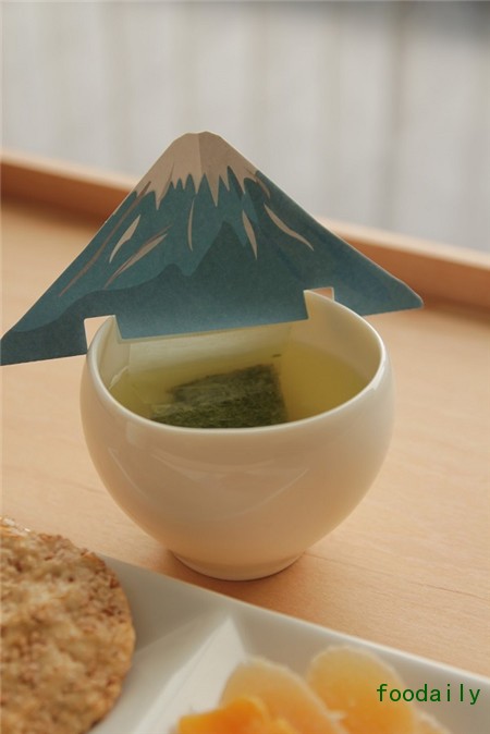 日本静冈县的SORARINE公司推出了这样一款富士山茶包“Mt.FUJI TEA BAG”。将其固定于装满茶水的茶杯之上,犹如富士山与河口湖一般,非常有意境。