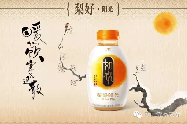 “统一如饮”是一款开辟出浓浓“中国风”味道的新型饮品,目前已有“冬瓜小荞”和“梨好阳光”、“梨想万岁”三款产品,采用传统中式食材银耳、冬瓜、荞麦等倾力打造,价格定位中高档5元一瓶,瓶型塑造上借鉴长灯笼,凸显浓郁中国味道,包装设计印有独特的古风字体和图案,主打中式果饮基调,从其营销的文案宣传中尤其可见一斑: