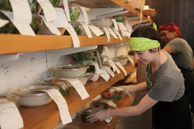 在7个纽约的Sweetgreen店里,类似的场景在每个工作日的午餐饭点时间一再出现。顾客大多是在附近办公楼上班的白领,他们以一份沙拉做午餐。