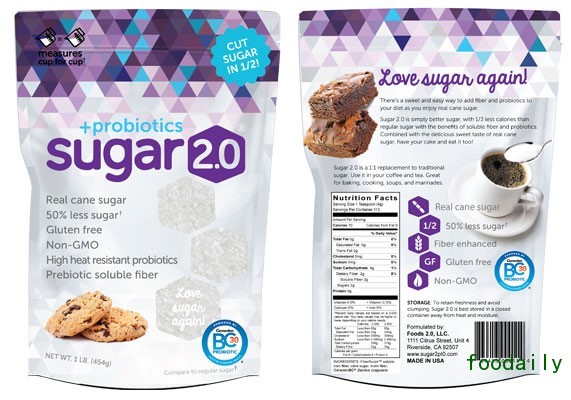 在Sugar 2.0之后推出的Sugar 2.0 + Probiotics,是一款传统甜味原料一对一的替代产品,但其所含的糖仅有原来的一半,热量还不到原来的三分之一。新产品中含有蔗糖和非转基因的益生元可溶性纤维,以及GanedenBC30益生菌。