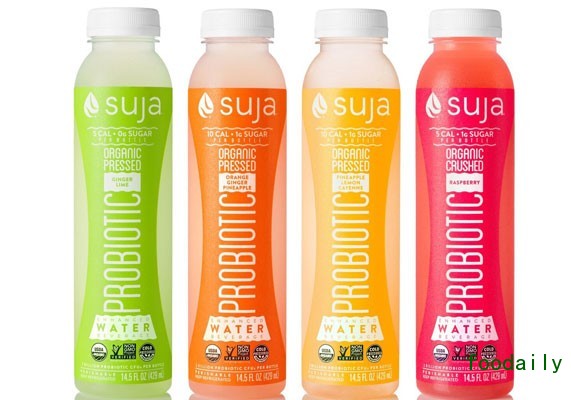 Suja Juice展示的Pressed Probiotic Waters系列,特色是在水中加入了有机水果、蔬菜以及素食益生菌。每瓶热量不超过10千卡,口味有树莓、姜汁青柠、菠萝柠檬辣椒和橙子姜汁菠萝。