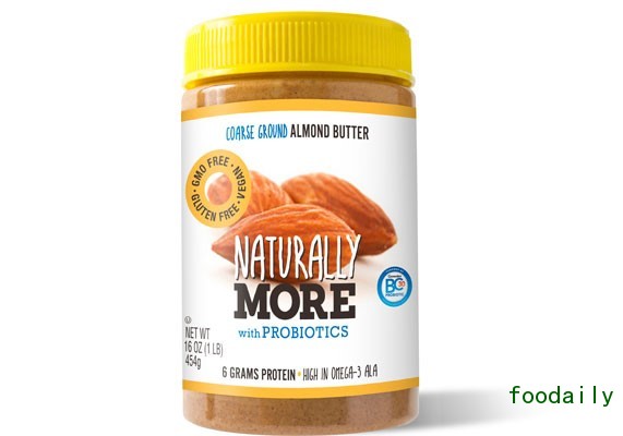 Naturally More推出益生菌版扁桃仁酱。这款粗磨扁桃仁酱采用了烤加州扁桃仁、GanedenBC30素食益生菌、亚麻籽和少量椰糖。每份扁桃仁酱含6克蛋白质,不含转基因配料、麸质,为素食产品。
