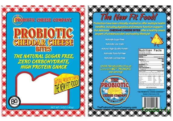 来自Probiotic Cheese Co.的益生菌切达干酪bites每份所含的GanedenBC30益生菌CFUs超过7.5亿。