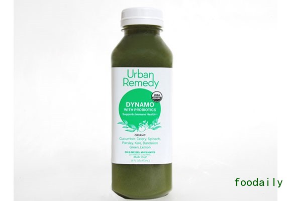Urban Remedy推出两款加入GanedenBC30的冷榨有机果汁。Dynamo中有黄瓜、芹菜、菠菜、欧芹、甘蓝、蒲公英和柠檬,而Happy Belly则是黄瓜茴香、苹果、姜、柠檬和薄荷。