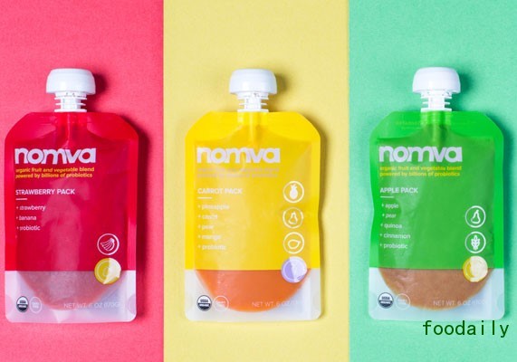 Nomva Snack 推出了HPP杀菌的有机果蔬汁,最大程度地保留了新鲜与营养。每瓶含有数十亿益生菌,风味上有草莓-香蕉、菠萝-胡萝卜-梨-芒果,苹果-梨-藜-肉桂,苹果-菠萝-菠菜-甘蓝,以及草莓-蓝莓-梨-香蕉等。Nomva Snack公司由两位22岁的年轻人所创立,而其母公司Phenomenal Foods, L.L.C., 在今年2月完成了一项300万美元的筹资行动,该行动由Evolution Media Capital和Taylor Farms发起。