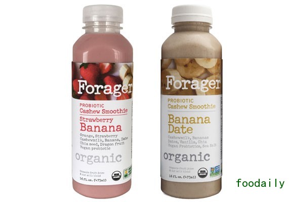 来自Forager Project的腰果益生菌冰沙新品种有香蕉枣椰和草莓香蕉。