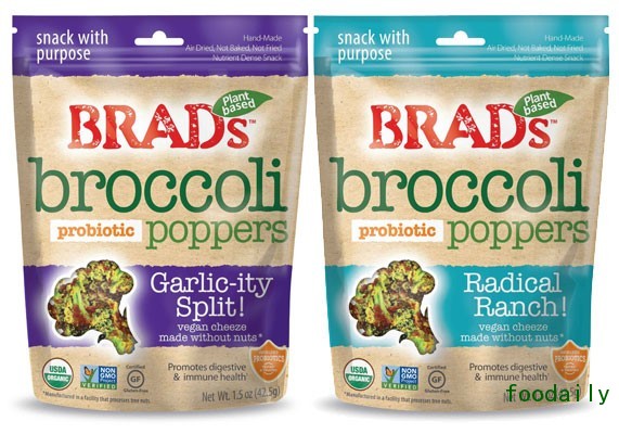 Brad's Raw Foods, L.L.C.,旗下Brad's Broccoli Poppers则使用了脱水西兰花和益生菌,有农场和大蒜两种口味。