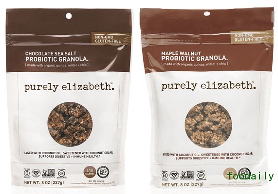 Purely Elizabeth推出了的无麸质格兰诺拉燕麦卷,配料有原始谷物燕麦和种籽,以及有机椰油、有机椰糖和GanedenBC30。