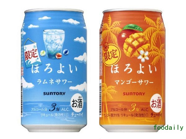 “微醺” (ほろよい)系列是日本三得利旗下畅销的低酒精浓度饮料,其清新的设计风格和口味受到日本众多年轻女性的喜爱。近日,“微醺”系列推出了两款初夏限定沙瓦(在日本,沙瓦指的是将蒸馏酒与果汁以苏打水稀释而成的鸡尾酒)——“柠檬汽水沙瓦”和“芒果沙瓦”。容量为350ml,酒精含量3%。参考售价为141日元(约8元,不含税),4月19日在全日本上市,目前日亚有售,点击围观(柠檬汽水味、芒果味)。
