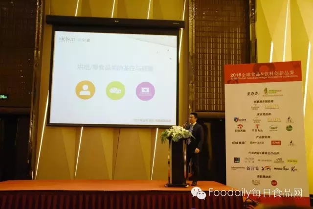 ▲ 尼尔森,消费品副总监,龚晨为大家分享“烘焙/零食品类的鉴往与前瞻”