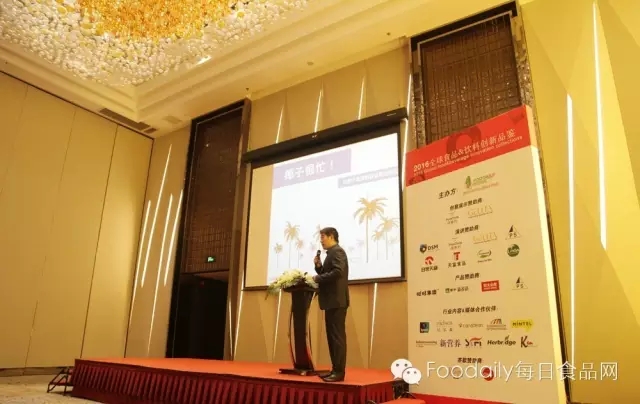 ▲ 印尼三务集团,中国区销售及市场经理,胡伟彬分享“椰子很忙—论椰子类原料在各类创新案例中的应用”