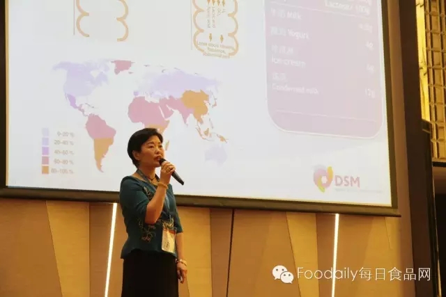 ▲ 帝斯曼,大中华区市场经理,潘玉分享“低乳糖,低糖乳饮料,如何获得更健康、更天然的解决方案?”