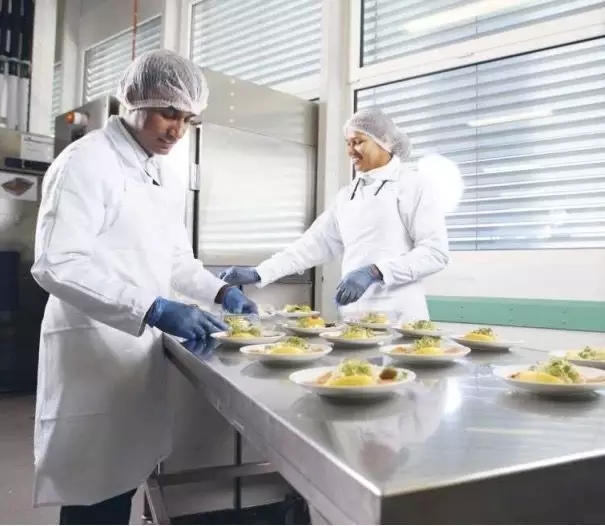 除了热厨房,其他生产车间的温度都要求在20度以下,所有餐食生产过程都要在冷链下进行,半成品和成品都要在8度以下的冷库里储存,长期冷冻库要求在零下20度以下,配送时通过20度以下的冷藏食品车直接运送到飞机上。