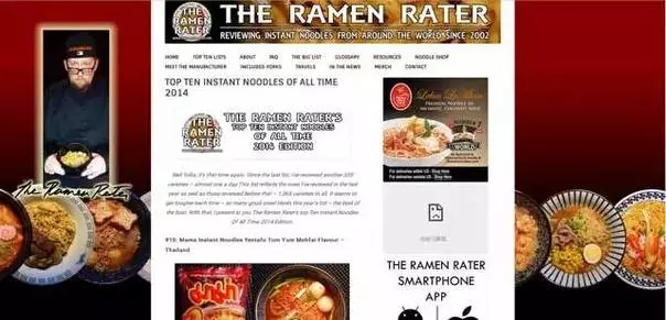 Hans Lienesch是一位来自美国的泡面殿堂级发烧友,自2002年开始他便热衷于测评来自世界各地的方便面,每年都发布吃货界最具权威的《泡面米其林美食指南》,他不仅有着自己“专业”的测评网站,还有一款叫做“Ramen Rater”的APP应用,每天都会不定时更新最新的方便面情报,因此而火遍全球。