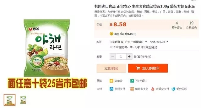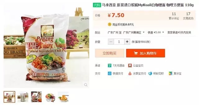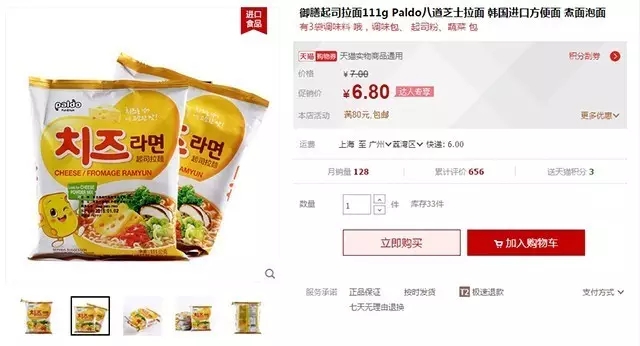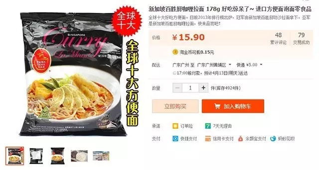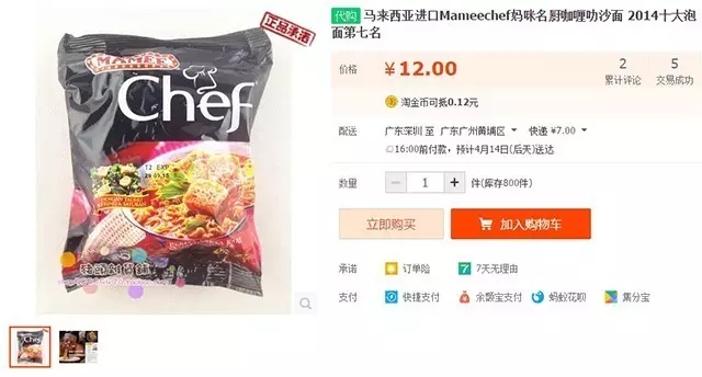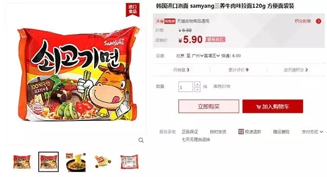 淘宝价格:同牌子的泡面参考价格为5.9元
