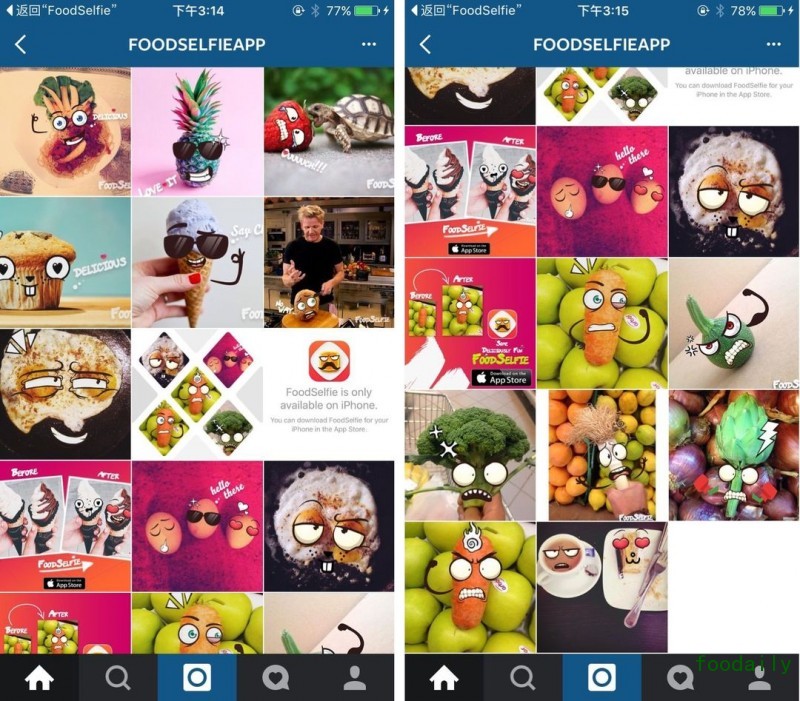 要想让作品更有意思些,就需要你发挥想象力了。FoodSelfie 在 Instagram 上也给出了一些有趣的案例。你可以在这里(@foodselfieapp)找到它。
