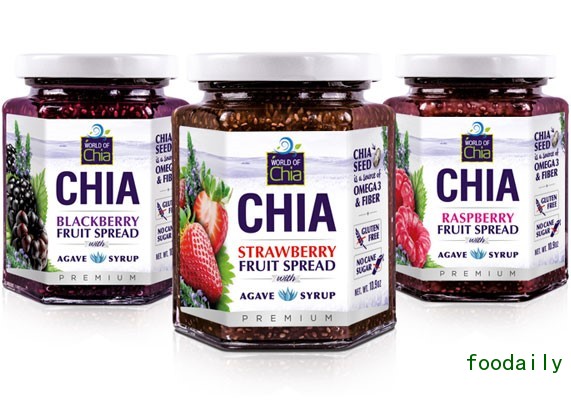 超级食物奇亚籽被World of Chia公司视为掌上明珠,并被用于推出的新款优质水果涂抹酱中。这款涂抹酱采用天然龙舌兰花蜜增甜,并通过添加柠檬或酸橙汁调节酸值,赋予产品适宜的酸甜比,此外,产品中无需额外添加无机酸,也不含果胶、麸质、高果糖浆、防腐剂、着色剂以及风味调料等成分。每个品种均包含四种不同的成分,每份产品中含有5 g碳水化合物,包括草莓、树莓及黑莓风味。