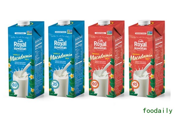 Royal Hawaiian Orchards公司执着于进军非酪蛋白乳品市场,热衷于向消费者推广其新品澳洲坚果牛奶(macadamia nut milks),主要是以公司自主品牌Hawaiian-grown macadamias为原料制备而成,这种坚果牛奶比传统牛乳能够增加50%的钙元素吸收,并且拥有清淡原味、清淡香草风味、清甜原味和清甜香草风味等多个系列。所有产品都满足非转基因产品认证,符合OU kosher洁食要求,并且不含乳糖、麸质、小麦、大豆、酪蛋白、鸡蛋、角叉菜胶、味精以及花生等成分。