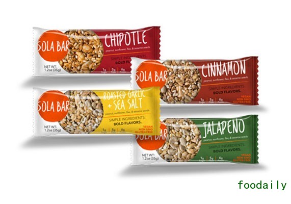Sola Snacks公司借助新近推出的Sola Bars正式涉足风味零食市场。这款风味小吃每份仅含有1 g碳水化合物。Sola Bars有4种不同的风味,每一种都满足素食需求,并且符合非转基因、无麸质、不含黄豆制品的认证要求。其中chipotle棒系列将烟味辣椒(chipotle peppers)、香菜、百里香、芥菜以及洋葱有机结合在一起;jalapeño棒的配料包括:墨西哥辣椒(jalapeño peppers)、迷迭香、牛至叶以及茴香籽等成分;海盐烤蒜棒则以烧烤蒜蓉风味为特征,配以洋葱、百里香、鼠尾草以及少许海盐;最后一种肉桂风味Sola Bar是以肉桂搭配豆蔻、生姜、丁香以及香菜制备而成,拥有辛辣和清甜香气。