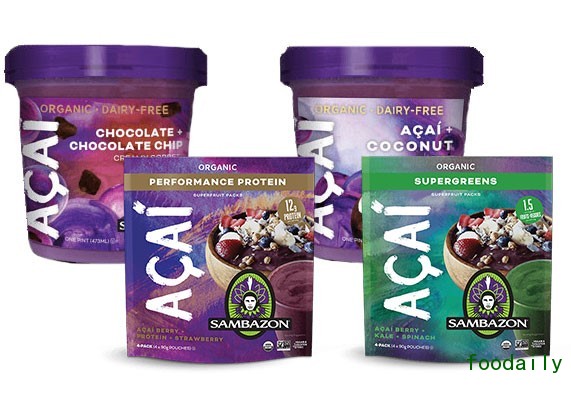 Sambazon公司新推出了ACAI系列产品,引入了2种全新的超级水果包装并赋予产品2种水果冰沙风味。每份产品能为消费者提供高达24 g的植物蛋白和90卡路里的能量,除此以外,还含有约5 g左右的碳水化合物。The Supergreens Superfruit Pack系列产品是以羽衣甘蓝和菠菜为基料,能提供1.5份的有机水果和蔬菜并且每份产品中含90卡路里能量和大约4 g左右的碳水化合物,主要以ACAI bowl、水果奶昔以及单独冰冻形式向消费者供应。Sambazon公司新推出的Acai Chocolate和Chocolate Chip Creamy Sorbet是将阿萨伊果(acai)和巧克力与松软巧克力糖块结合在一起制备而成。The Acai and Coconut Creamy Sorbet产品则将阿萨伊果与椰肉完美组合。所有这几款水果奶昔均为天然有机产品,不含酪蛋白乳品以及麸质成分。所有隶属于Sambazon公司的产品不含麸质,均满足美国农业部有机、非转基因产品认证,并且产品原料阿萨伊果已经获得欧盟有机认证,符合公平贸易标准。